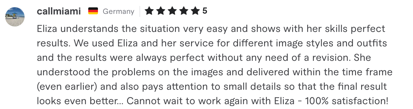 These reviews reflect my approach to high-end retouching: attention to detail, consistent quality, clear communication, and the ability to adapt to any creative direction.